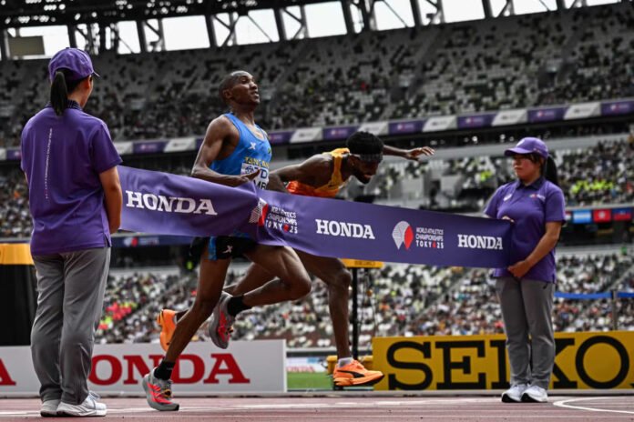 A maratona do Mundial de Atletismo de Tóquio entrou para a história nesta segunda-feira (15) com uma chegada inédita: pela primeira vez, a medalha de ouro foi definida por “photo finish”, recurso geralmente associado a provas de velocidade.