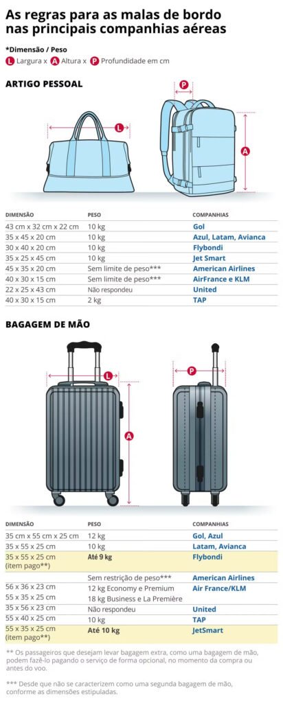 Além das novas regras sobre bagagens, o texto aprovado também traz medidas de acessibilidade e disciplina no transporte aéreo. Companhias deverão oferecer assistência especial gratuita a passageiros com deficiência, podendo ceder até dois assentos extras para equipamentos médicos ou ajudas técnicas. Já passageiros que cometerem atos de indisciplina gravíssimos poderão ser suspensos de voar por até 12 meses — e seus dados poderão ser compartilhados entre empresas aéreas.