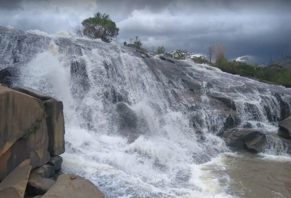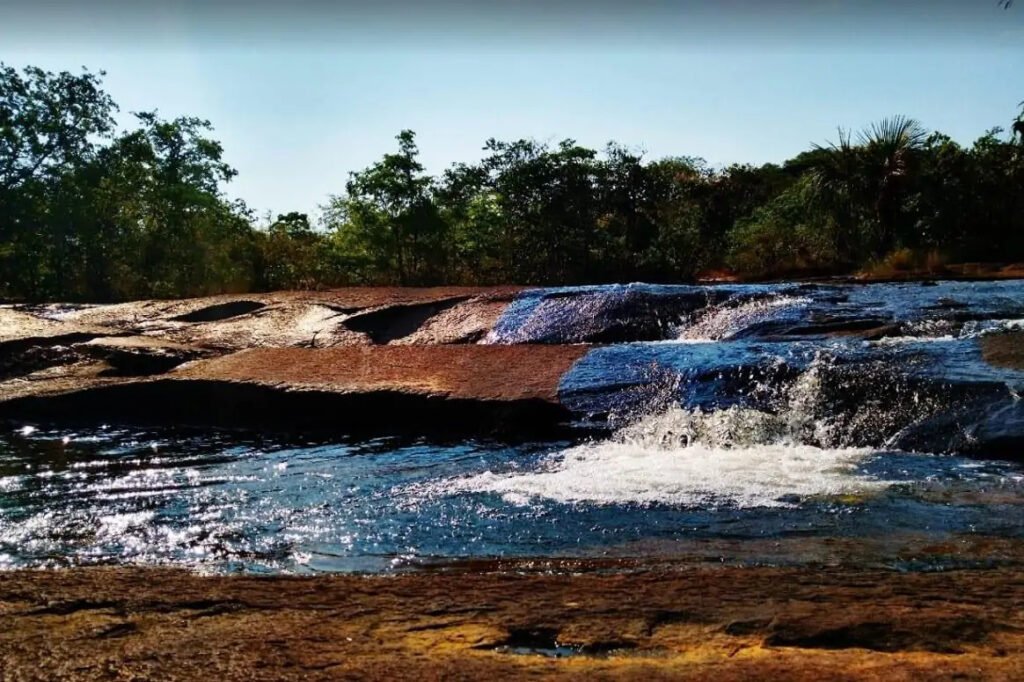 A Cachoeira do Lajeado, em Minaçu, revela quedas d’água sobre lajes de pedra, formando poços rasos e profundos que convidam ao banho em meio ao Cerrado.