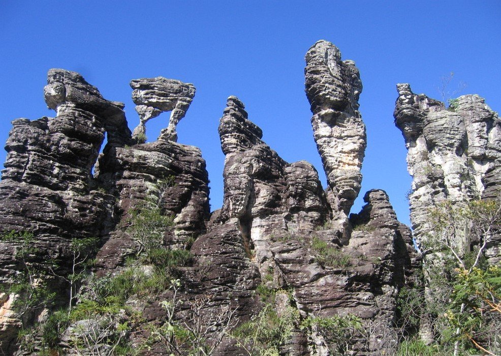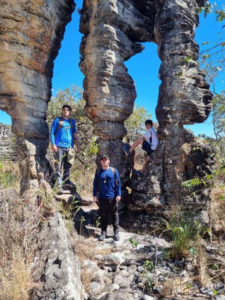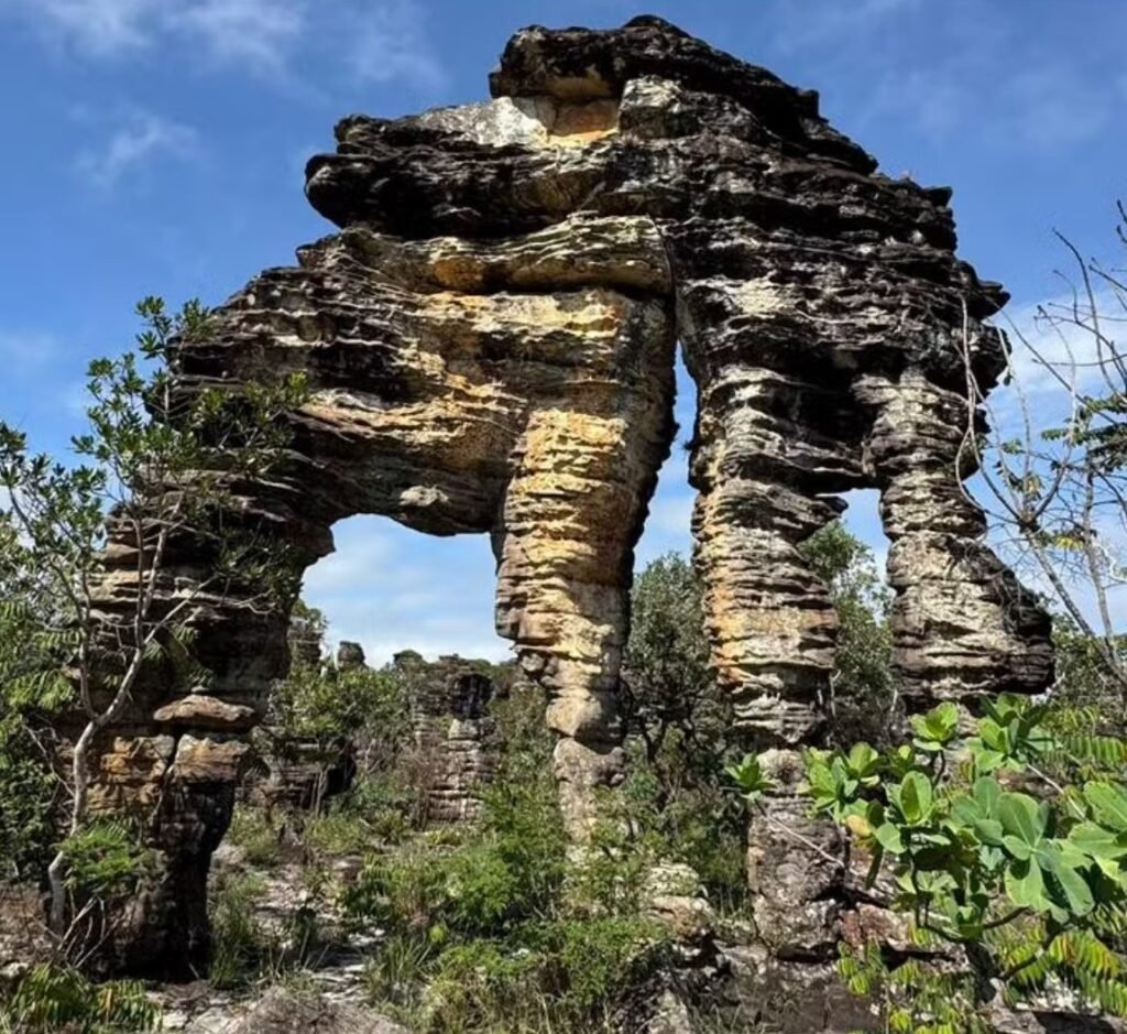 Formadas por quartzito e arenito, essas estruturas têm idade estimada em centenas de milhões de anos. Duas pirâmides paralelas se destacam na paisagem, uma delas com cerca de 150 metros de altura, reforçando a sensação de caminhar por uma cidade antiga, silenciosa e monumental — o que rendeu ao local o apelido de “Machu Picchu do Cerrado”.